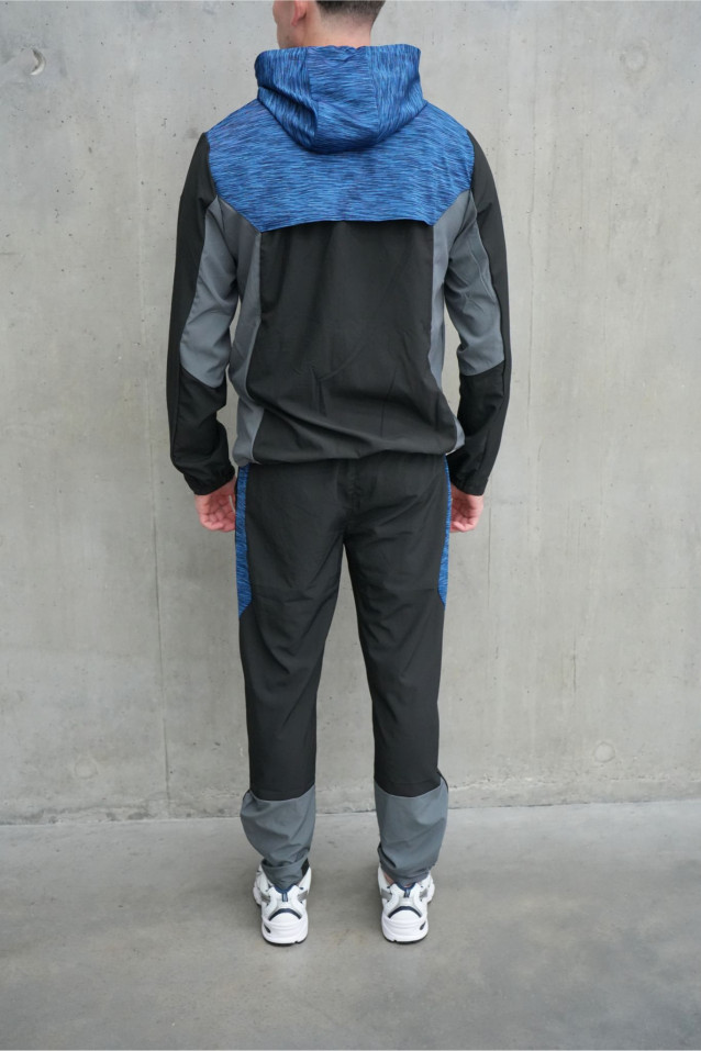 The bottom of the tracksuit is matched with a full zip hoodie, providing a snug fit and added warmth during colder weather. The full zip design also allows for easy on and off, making it convenient for the wearer.
