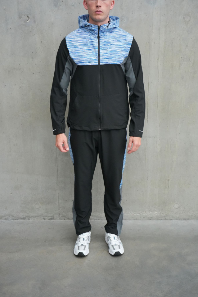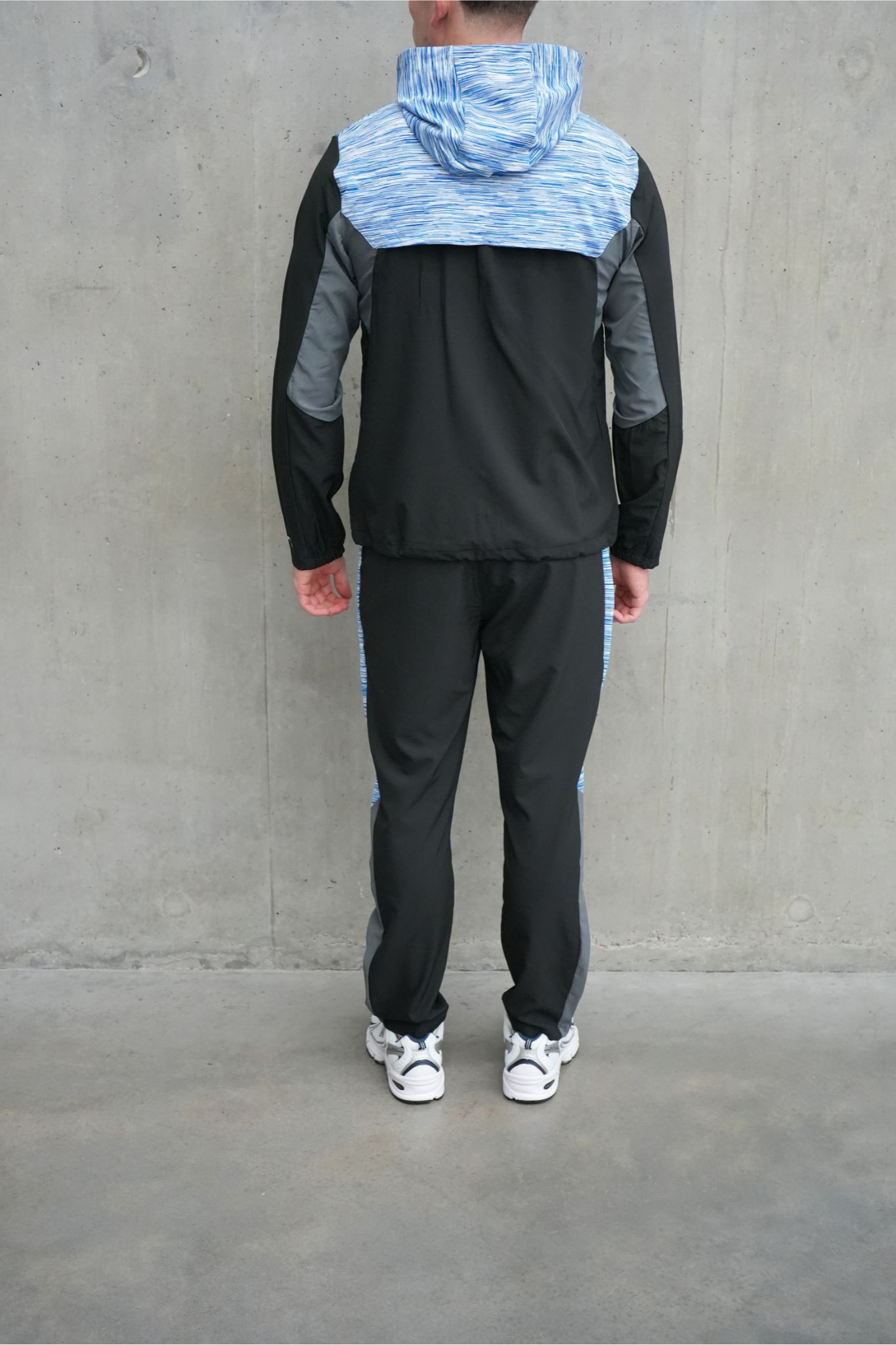 The bottom of the tracksuit is matched with a full zip hoodie, providing a snug fit and added warmth during colder weather. The full zip design also allows for easy on and off, making it convenient for the wearer.