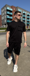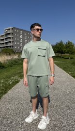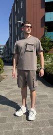 Introducing the Clovu Mens Cargo Pocket Set, a perfect combination of style and comfort. This set includes a T-shirt and shorts made of a premium cotton blend fabric that is both durable and comfortable to wear. The luxury fabric used in this set provides a high-end feel and is sure to impress.