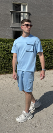 Cargo Pocket Luxury Short-Set In Baby Blue