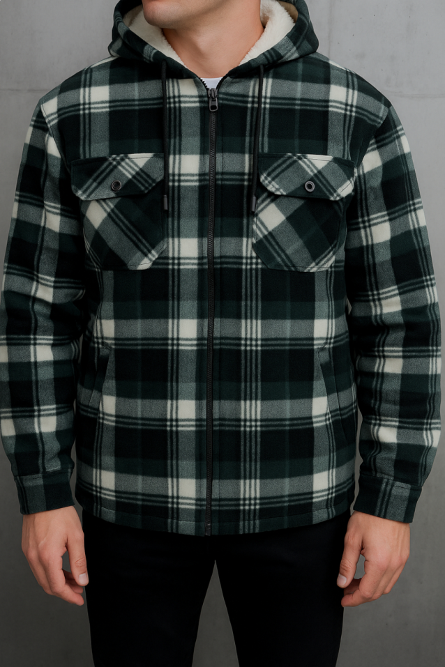 - Winter Polo Hoodie: With a stylish lumberjack pattern and a practical hood, this jacket adds a rugged, timeless touch to your winter look.