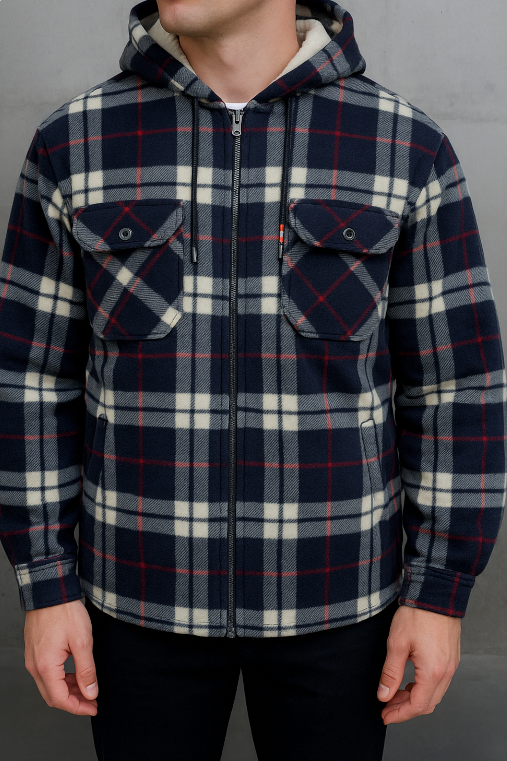 - Winter Polo Hoodie: With a stylish lumberjack pattern and a practical hood, this jacket adds a rugged, timeless touch to your winter look.