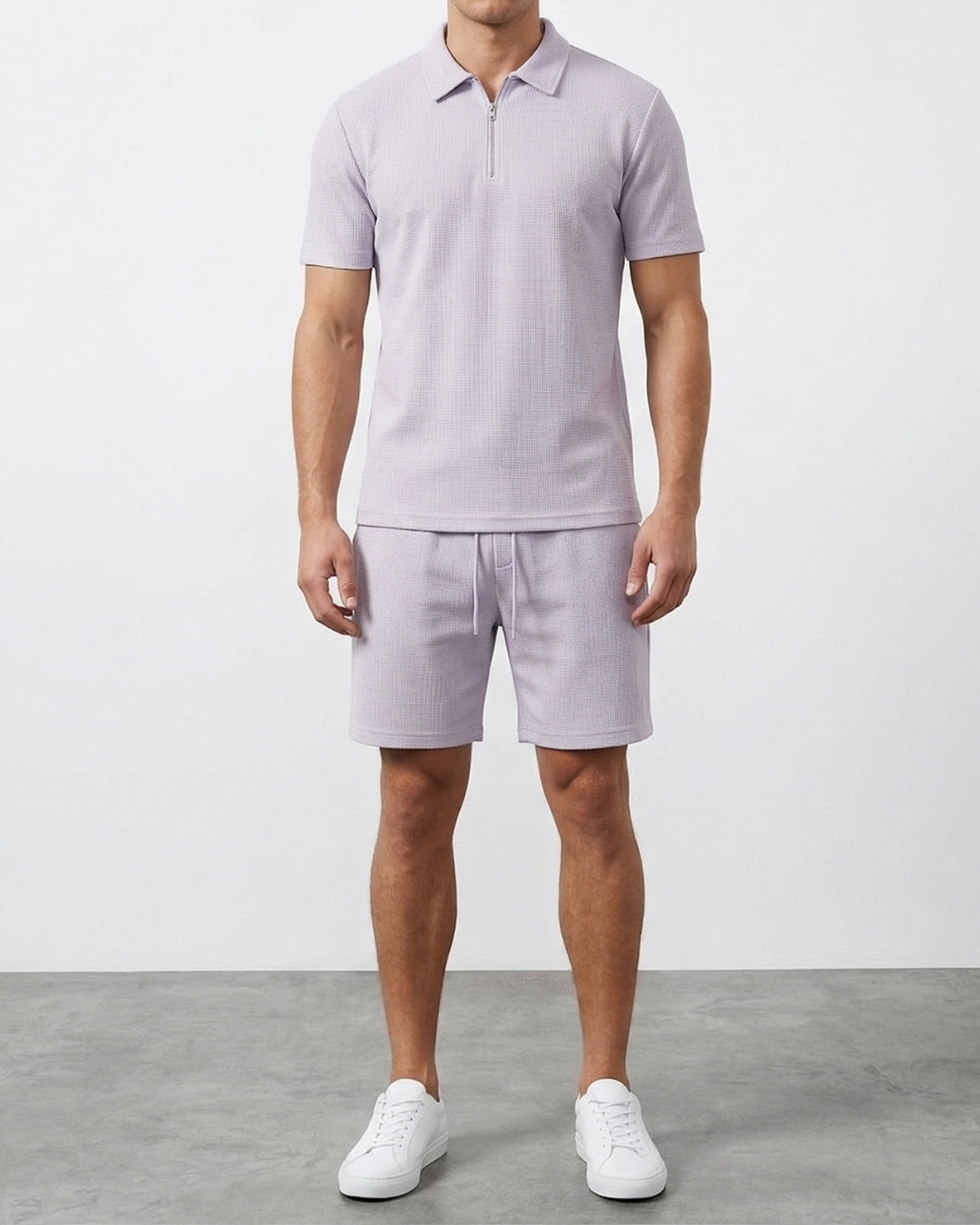 Introducing the Clovu Mens Premium Half Zip Holiday Set, a luxurious and comfortable outfit that is perfect for your next vacation or leisurely outing. This set includes a top and shorts made from Pique Luxury Fabric, which is known for its softness, durability, and breathability. The half zip design allows for easy on and off, as well as adjustable ventilation, making it a practical and stylish choice for any occasion.
