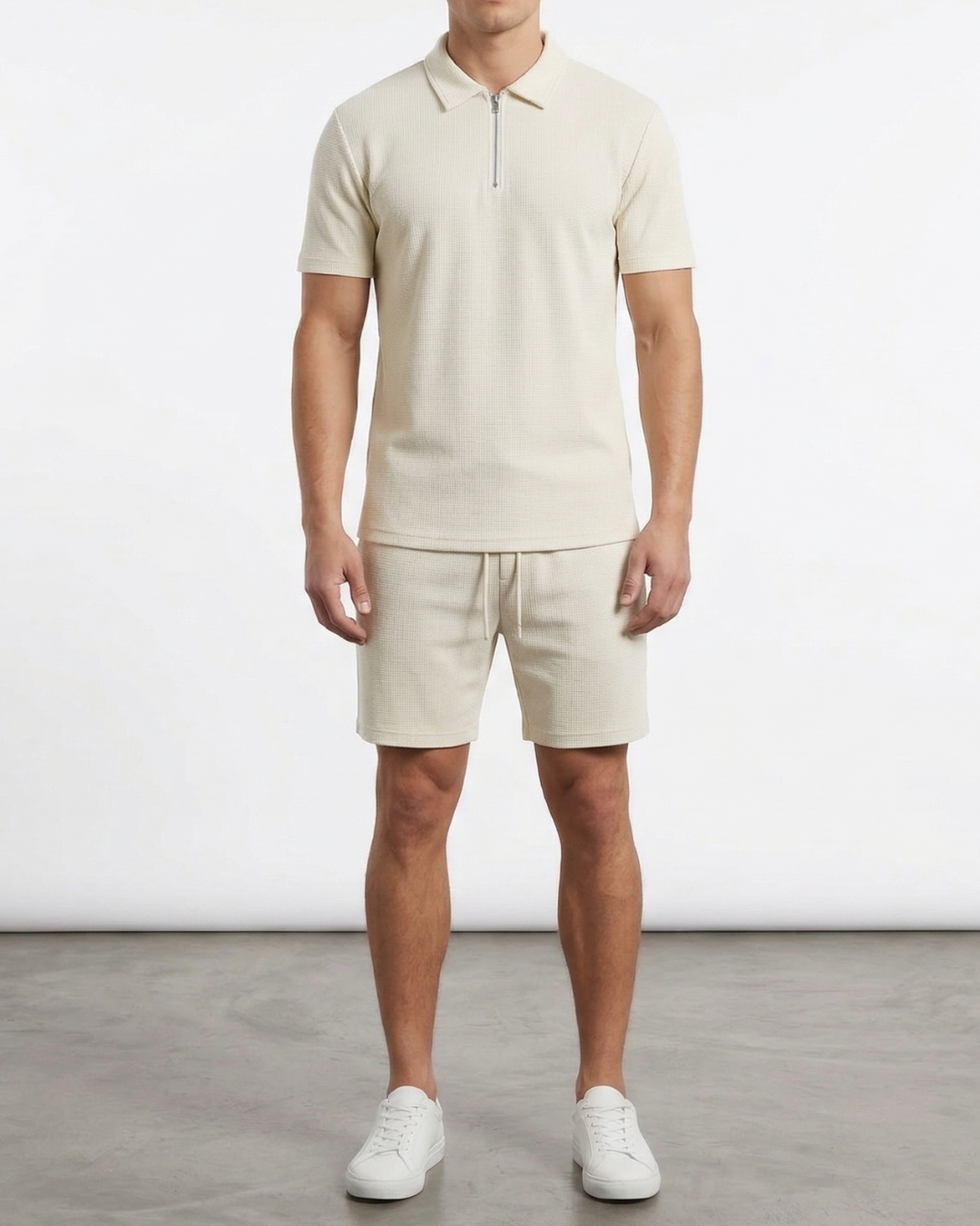Introducing the Clovu Mens Premium Half Zip Holiday Set, a luxurious and comfortable outfit that is perfect for your next vacation or leisurely outing. This set includes a top and shorts made from Pique Luxury Fabric, which is known for its softness, durability, and breathability. The half zip design allows for easy on and off, as well as adjustable ventilation, making it a practical and stylish choice for any occasion.