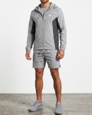 Hybrid Design: Combines a textured, heathered pattern on the chest and hood with solid-tone wind-resistant panels.
