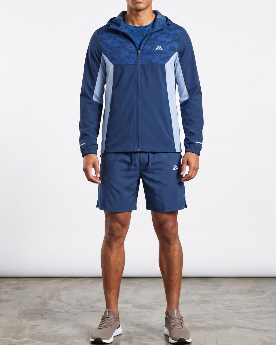 Hybrid Design: Combines a textured, heathered pattern on the chest and hood with solid-tone wind-resistant panels.