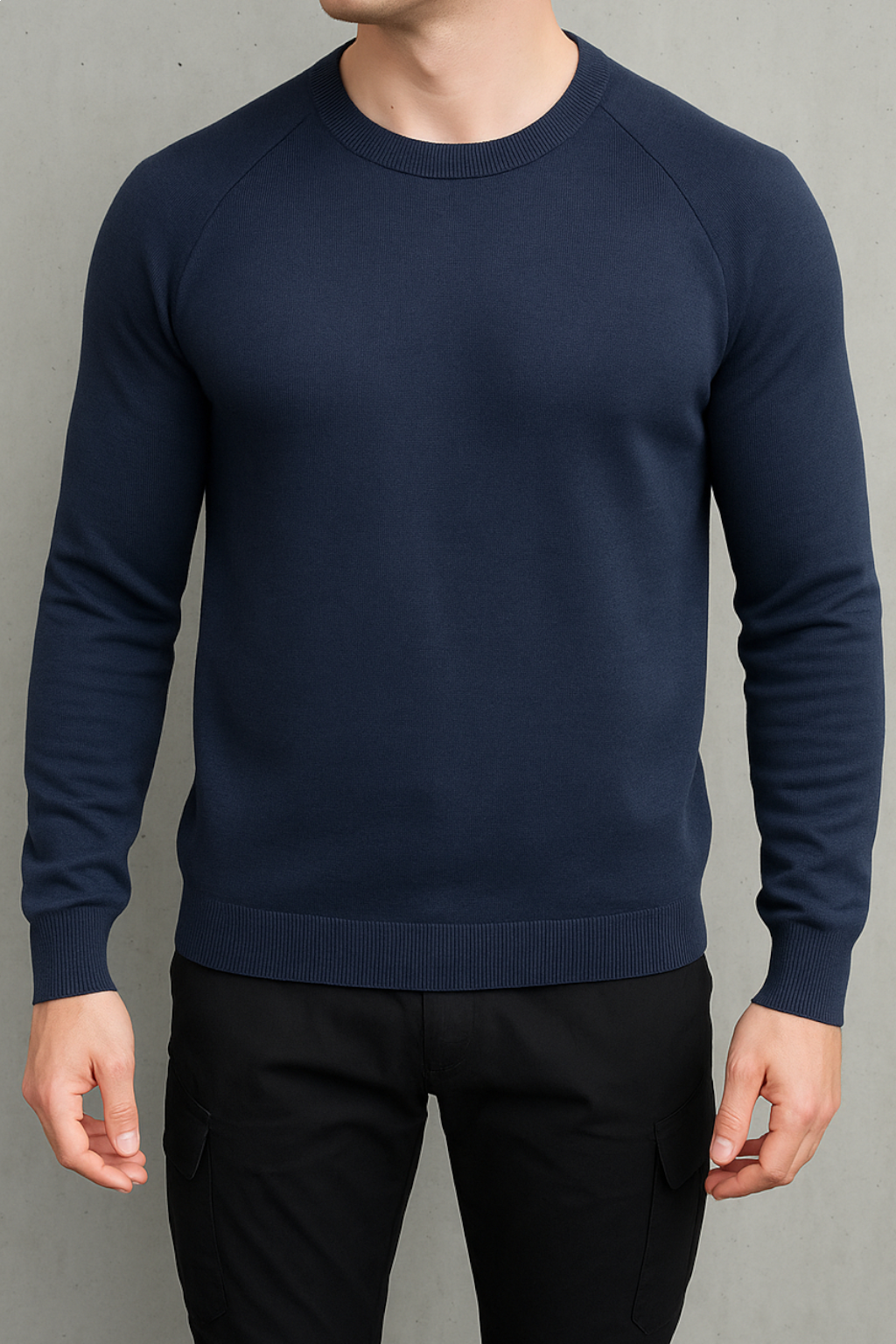 Luxury Soft-Feel Round Neck Jumper in Navy