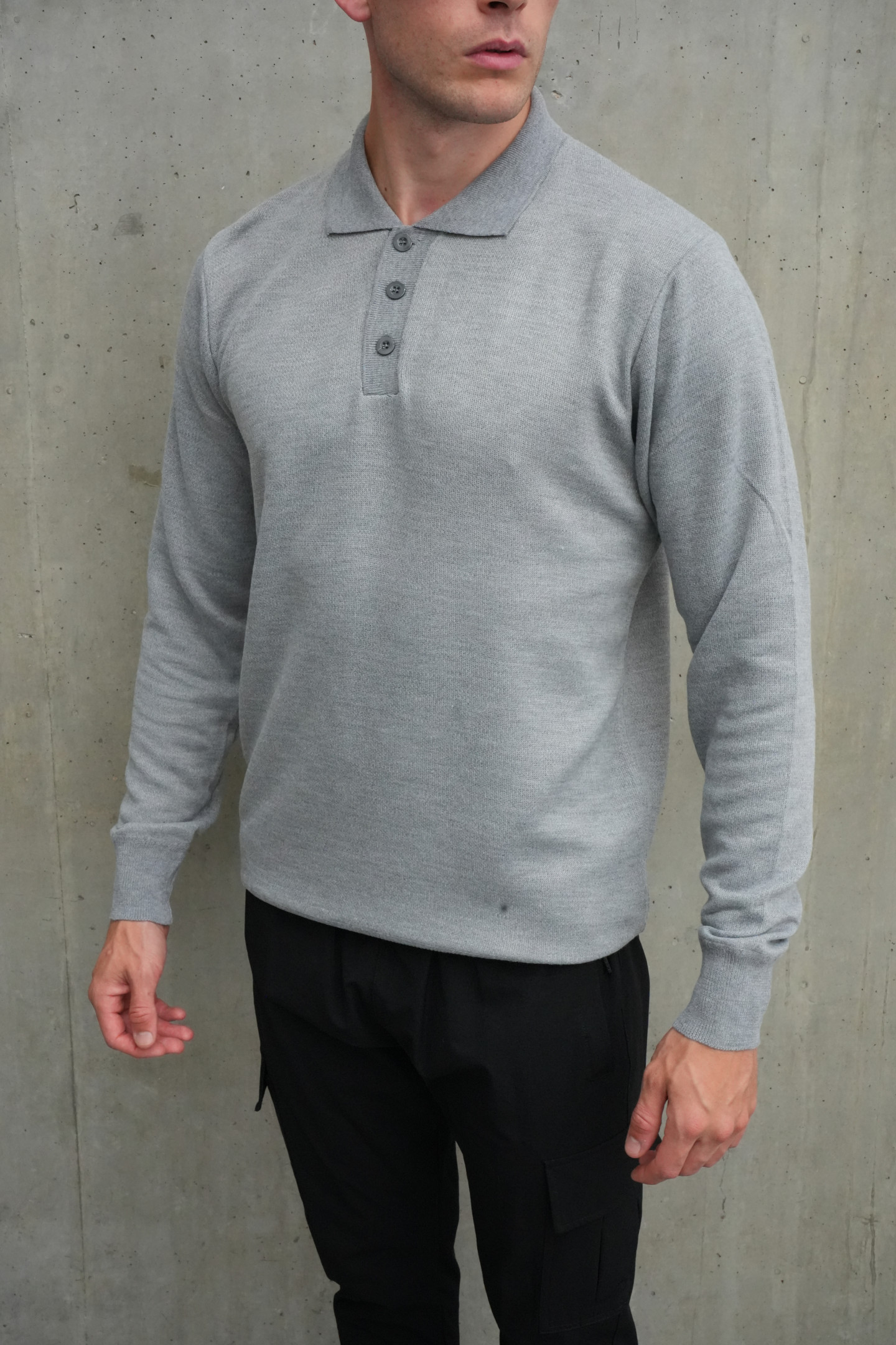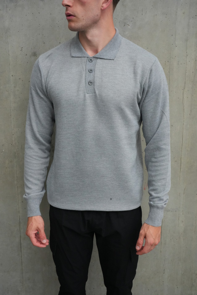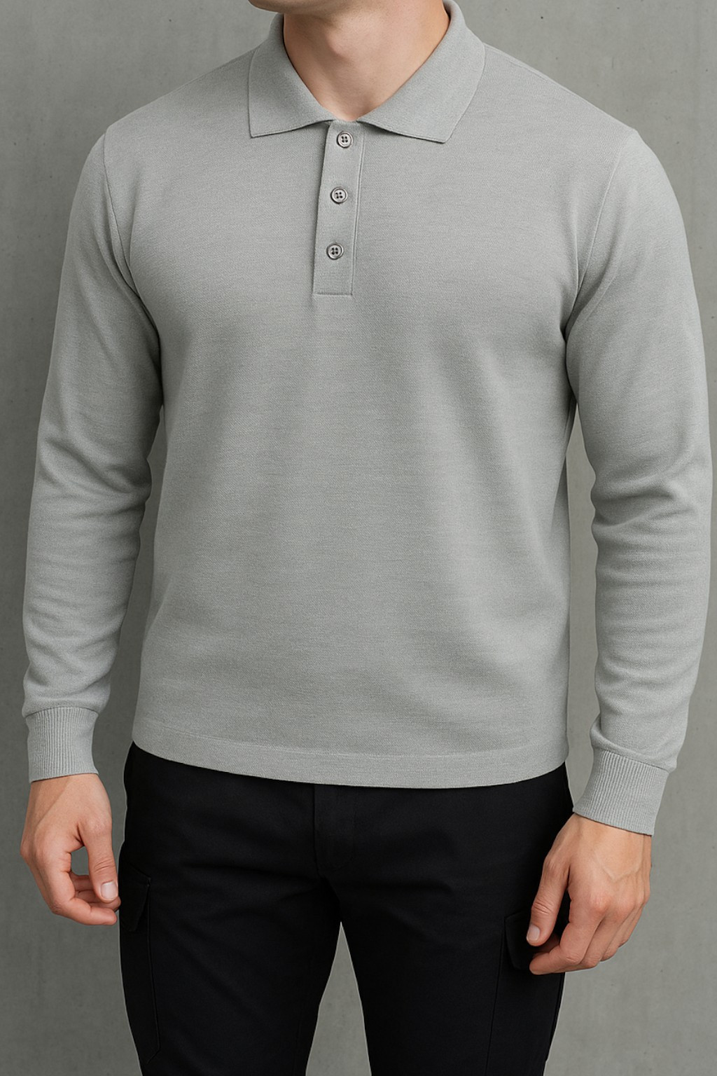 Luxury Soft-Feel Three-Button Knitwear in Grey