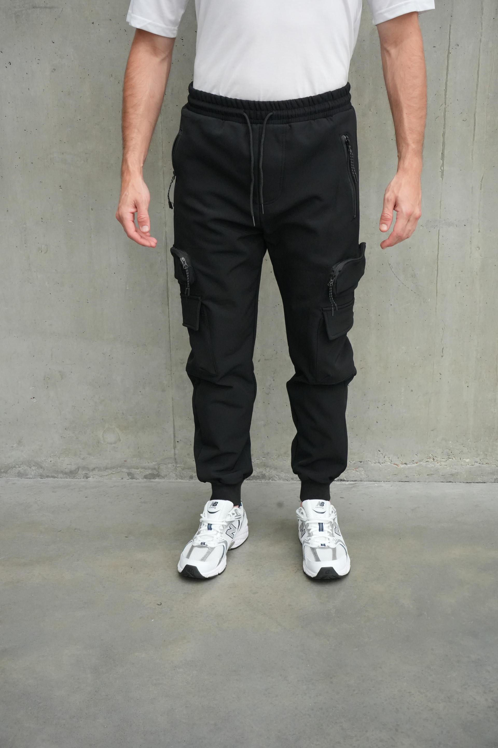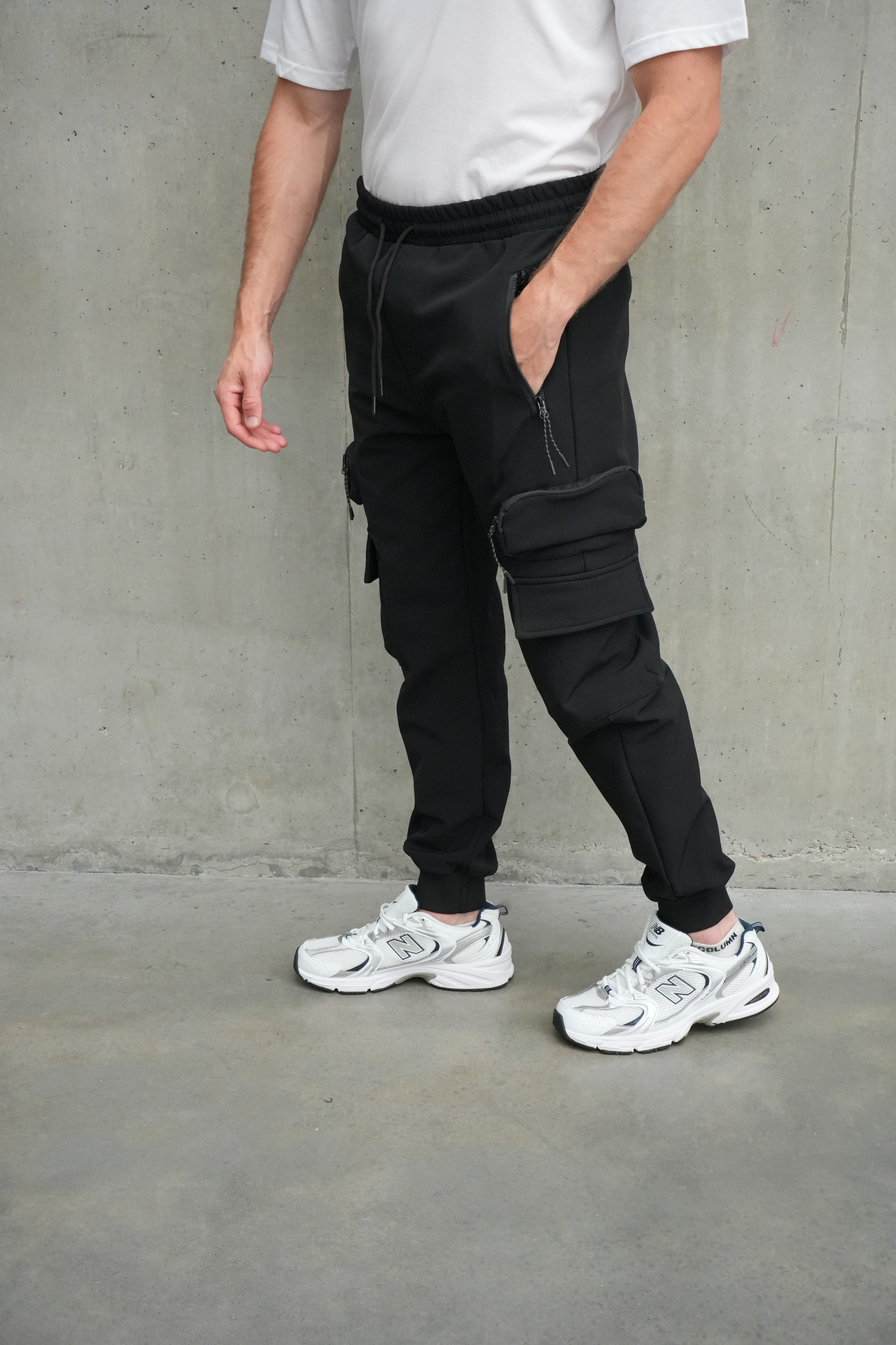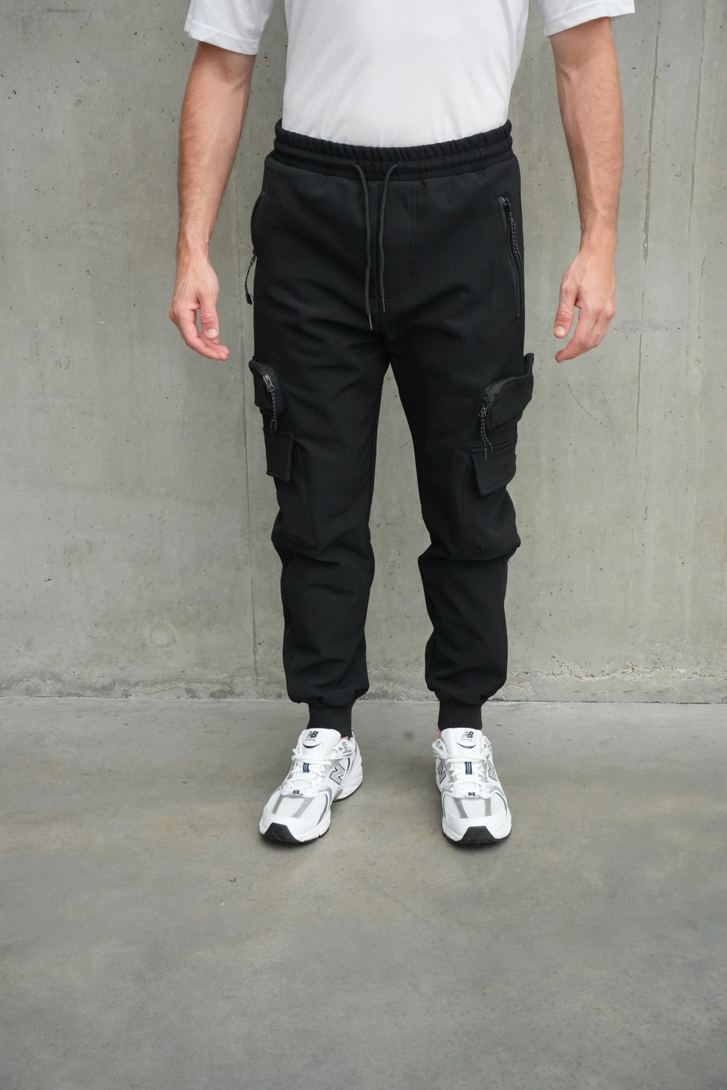 Luxury Suede Lining Square Pocket Winter Fleece Cargos in Black
