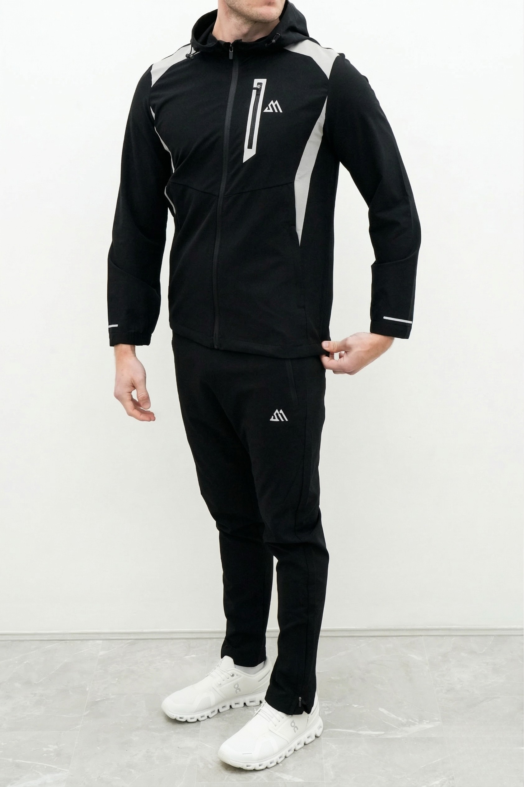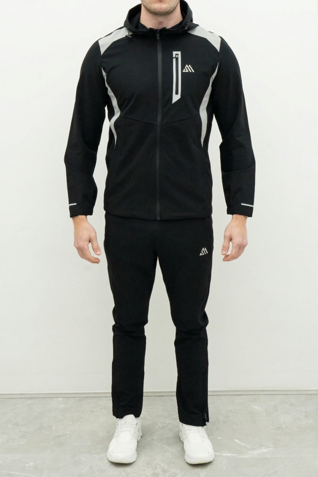 The jacket is packed with functional details including a full-zip front an adjustable toggle hood and a secure vertical chest pocket with a waterproof zipper seal to keep your essentials safe. Contrast shoulder panels and side accents provide a dynamic athletic look while the reflective logos ensure you stay visible during late-night training sessions. The matching joggers feature a flexible elastic waistband with an adjustable drawstring and side zip pockets for a streamlined fit that stays in place no matter how intense the workout gets.