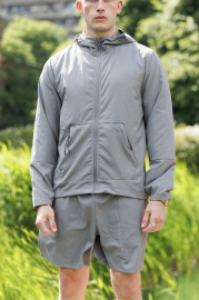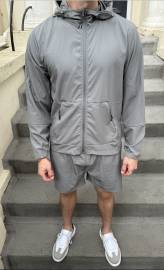 Nylon Short-Set Tracksuit Mens Windbreaker in Light Grey