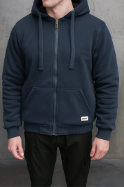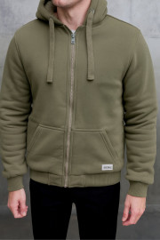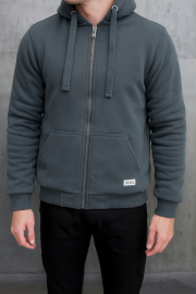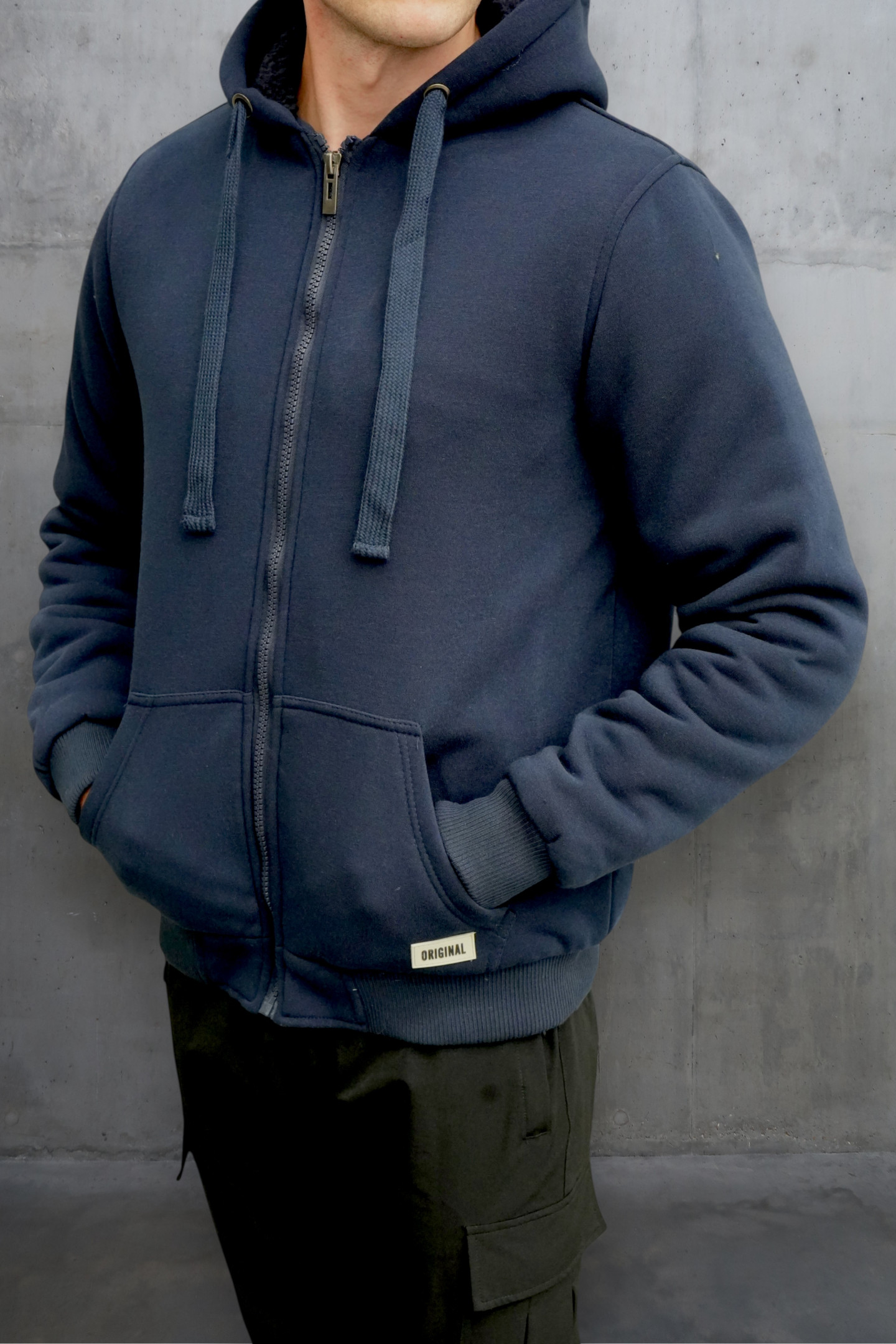 Mens Padded Borg Fleece Sherpa Lined Full Zip Up Hoodie Sweatshirt Jacket: