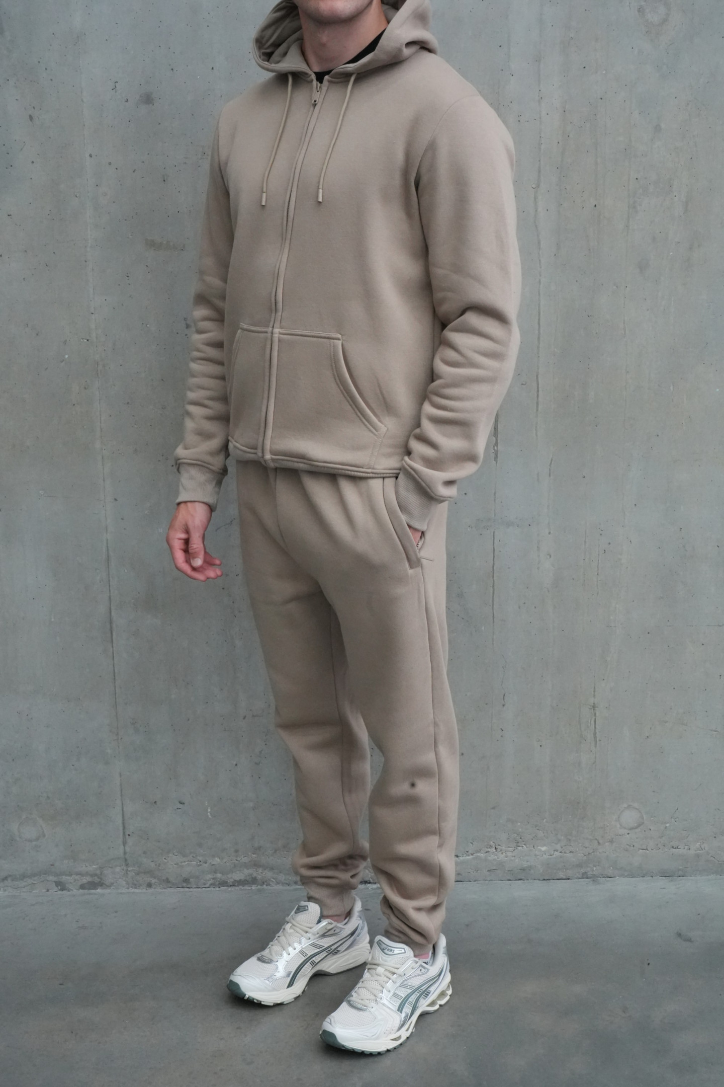 Premium Full Zip Cotton Mix Tracksuit in Beige