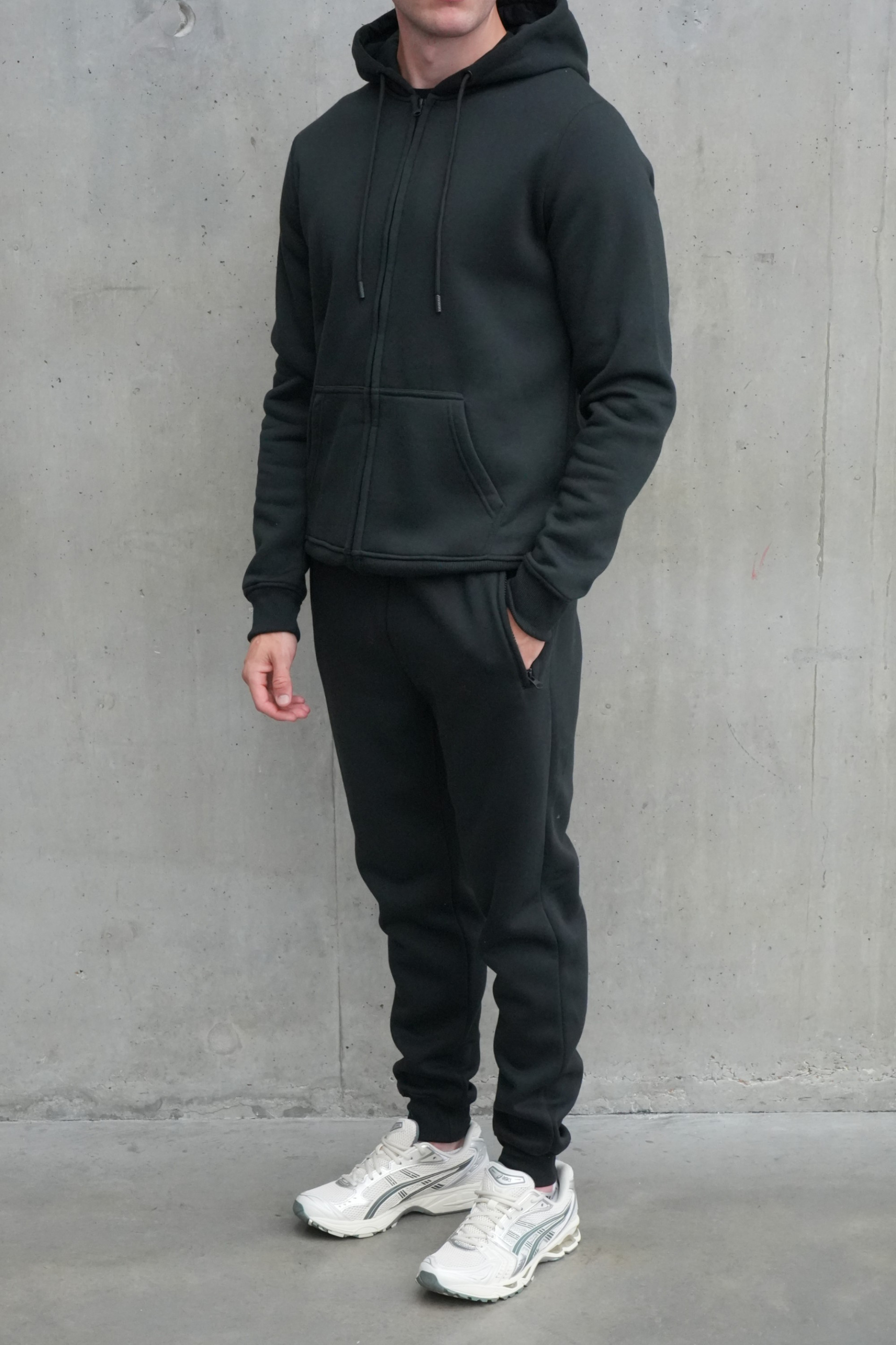 Premium Full Zip Cotton Mix Tracksuit in Black