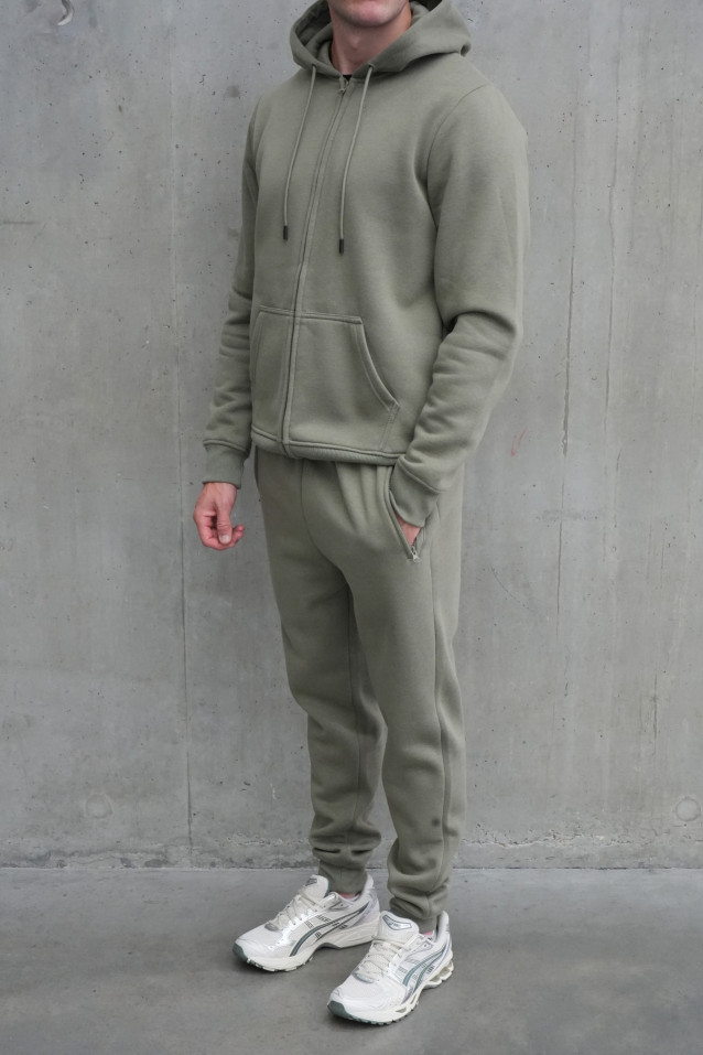 This tracksuit set offers practicality and style. The functional zip pocket on the hoodie adds a practical touch. The matching bottoms ensure a coordinated appearance. Perfect for those who value both comfort and fashion in their daily wear.