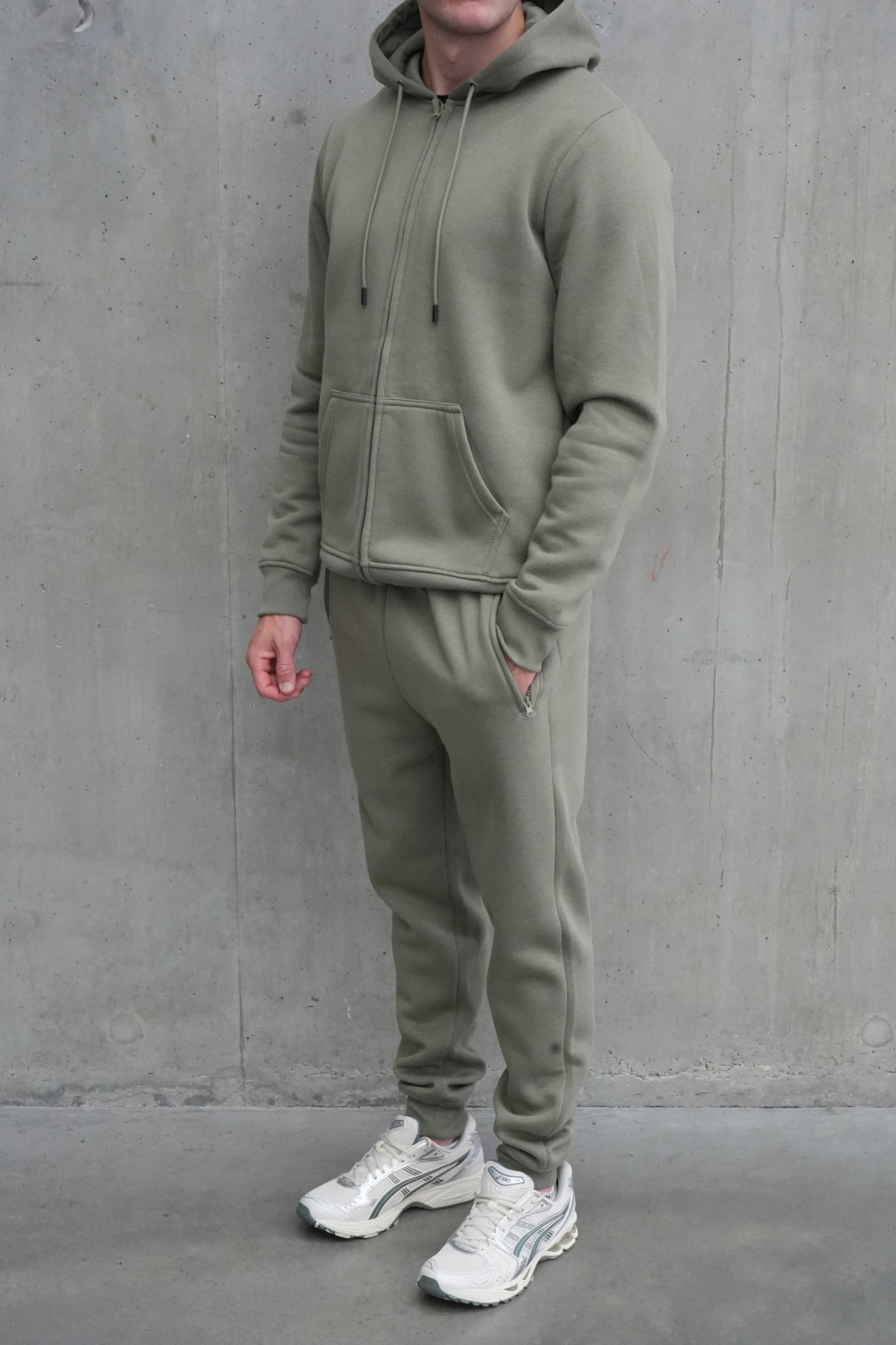 Premium Full Zip Cotton Mix Tracksuit in Forest Green
