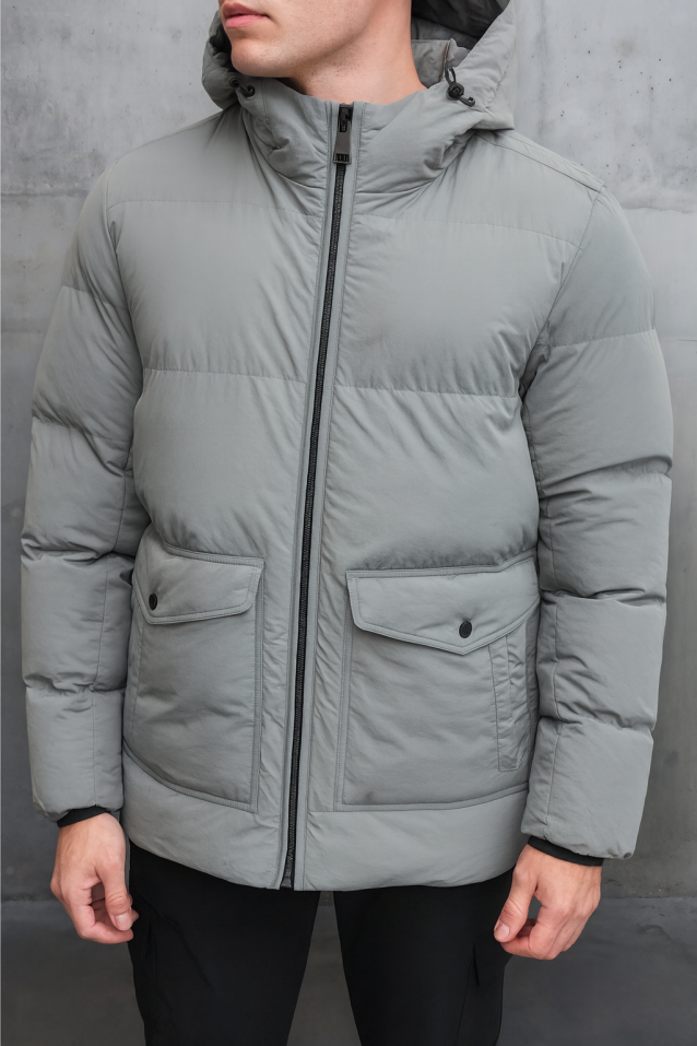 Premium Two Square Pocket Padded Jacket in Light Grey