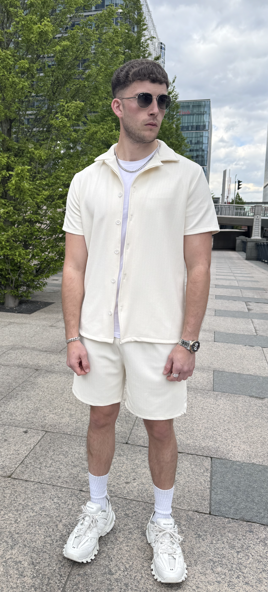 Elevate your summer style with the Clovu Mens Premium Reisse Set. This matching shirt and shorts ensemble is designed for comfort and sophistication, perfect for holiday outings.