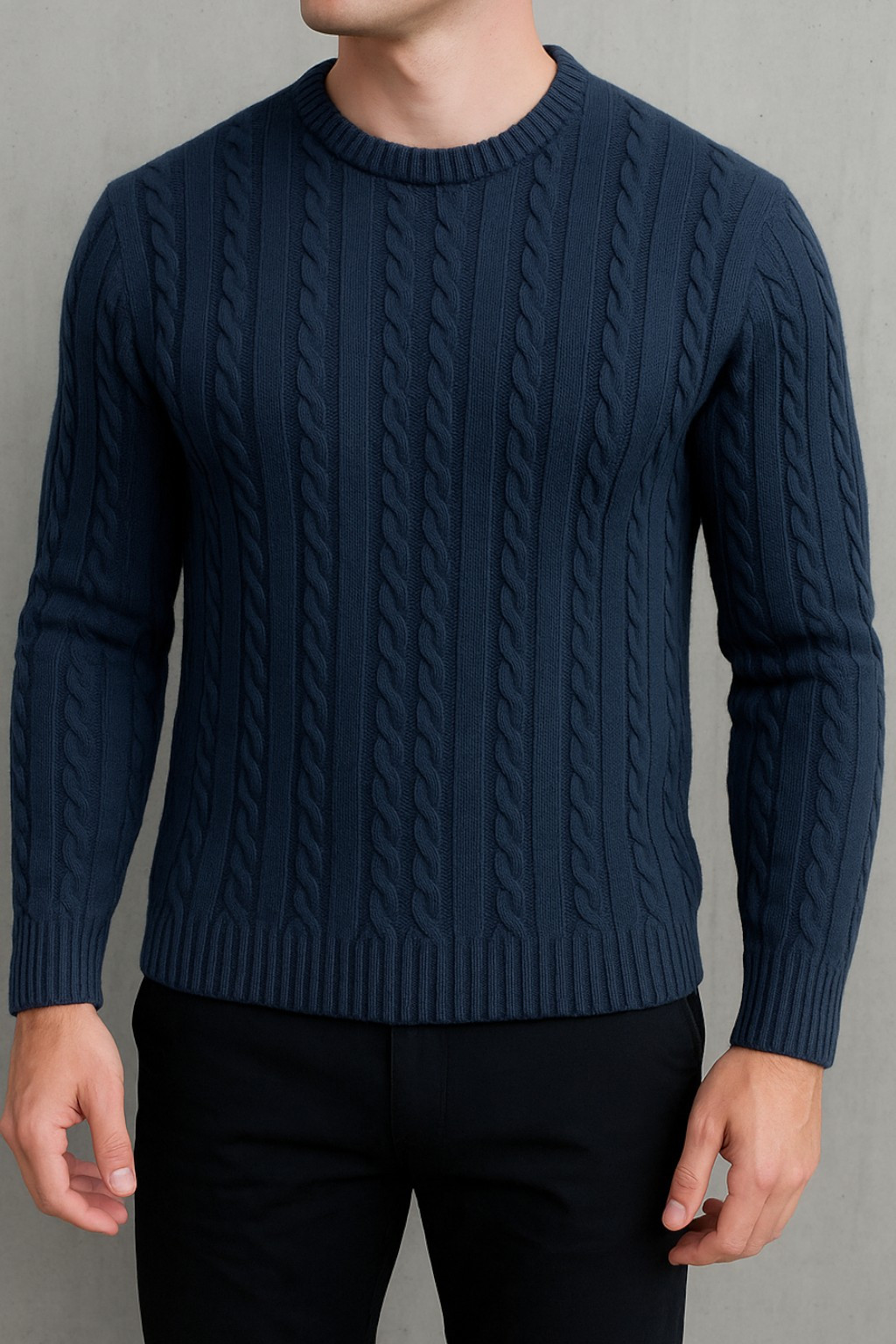 Round-Neck Cable Knit Wear in Navy
