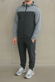 Upgrade your off-duty style with this sleek two-piece tracksuit, durable nylon for all-day comfort. Featuring a modern two-tone color block design, full-zip hooded jacket, and matching jogger pants, it’s perfect for training, travel, or casual wear. The zip-secured pockets keep your essentials safe, while the elastic cuffs and waistband ensure a snug fit. Available in multiple colorways to suit your style.